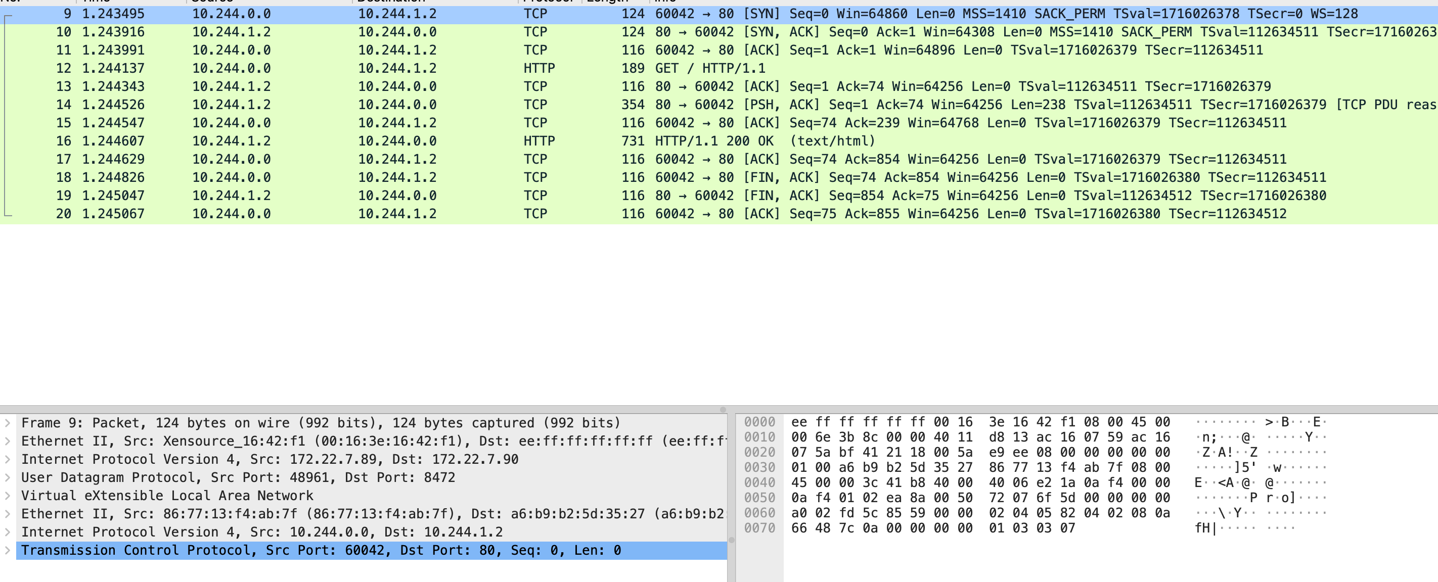 $ tcpdump -s0 -X -nn -i cni0 -w cni0.pcap --print