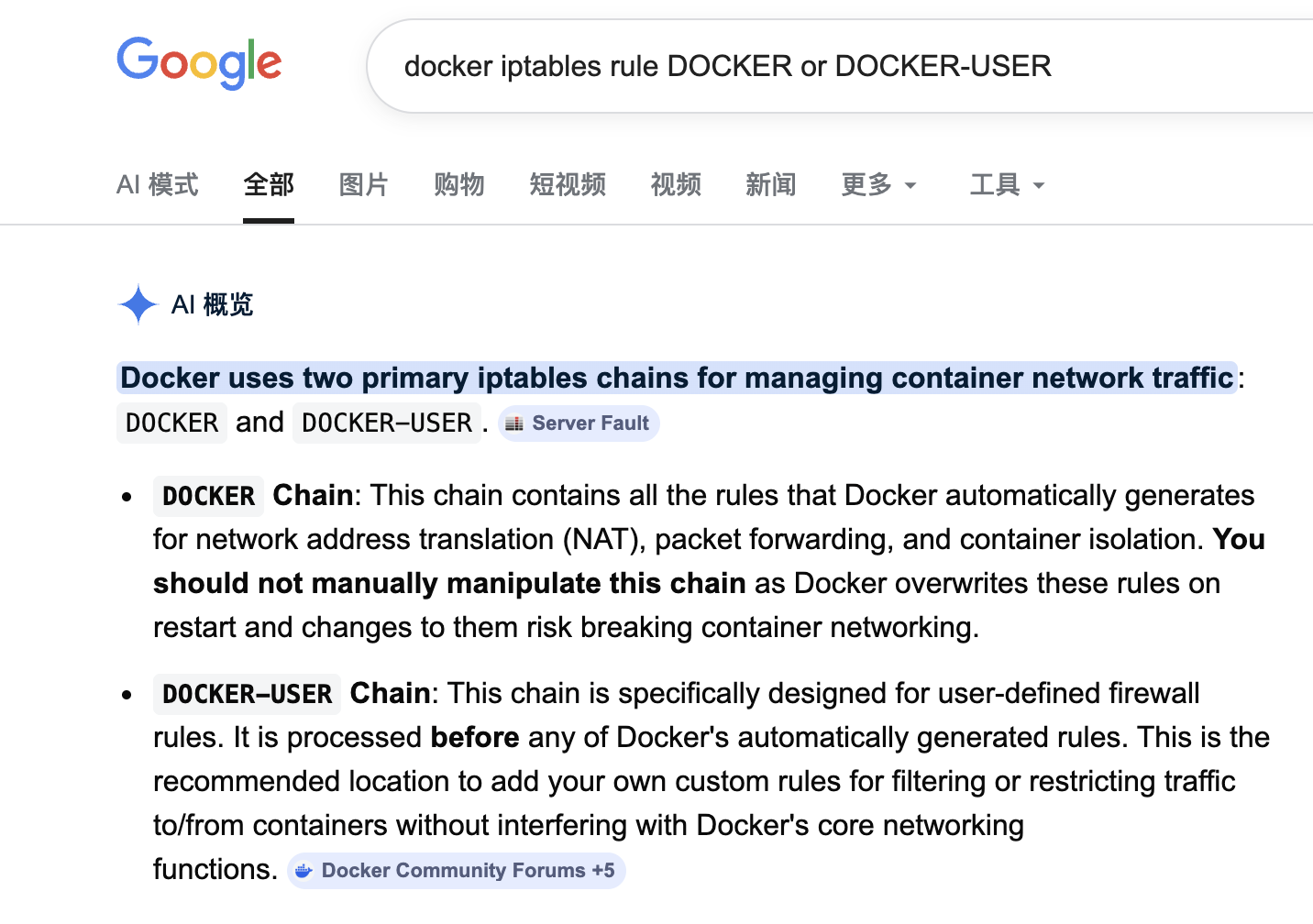 -A PREROUTING -m addrtype --dst-type LOCAL -j DOCKER